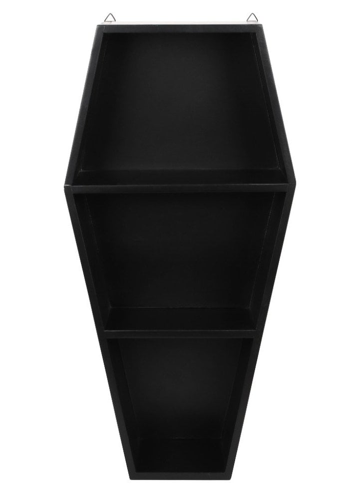 Check out this Coffin Shelving Display! The awesome coffin shaped unit will add some serious creepiness to your room. Perfect for housing your most prized possessions, small oddities and taxidermied items, this gothic shelf is ready to hang thanks to the two hooks attached to the back!