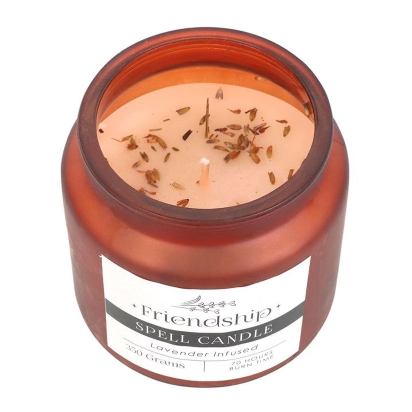 This jar candle is infused with lavender and is perfect for accompanying spells of friendship and relationships. Candle magic is one of the simplest forms of spell casting in which the caster decides on a goal, visualizes the end result and focuses intent to manifest that result. Packaged in a frosted glass jar with a cork lid, this candle will attract all things divine whether used as decor or as a ritual tool. Total burn time of 70 hours. Do not burn for more than 4 hours at a time.
