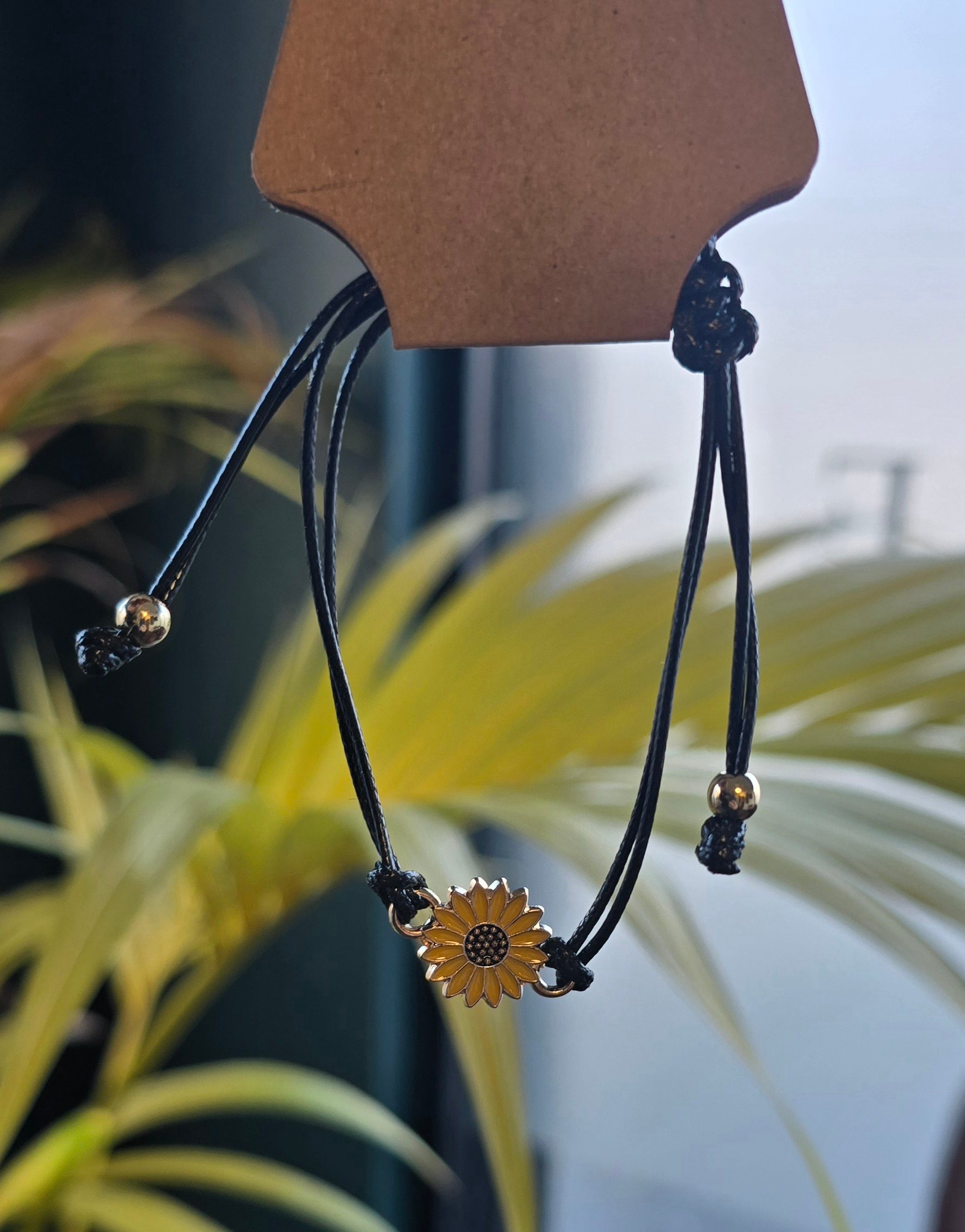 Gold Sunflower Bracelet Fully Adjustable with Enamel Sunflower Charm